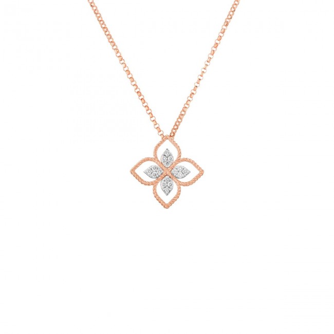 Κολιέ Roberto Coin, συλλογή Princess Flower, με διαμάντια και ρουμπίνι " Κίτρινος χρυσός Κ18 " Πέτρες : Διαμάντια,ρουμπίνι